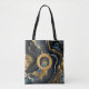 Elevate your daily style with this sophisticated and artistic Navy Blue & Gold Agate Marble Monogram Tote Bag. This design features a mesmerizing abstract fluid art background that mimics the look of deep ocean waves, dark geode stone, and liquid marble. The rich palette of midnight navy, charcoal black, and swirling greys is dramatically highlighted by veins of shimmering faux gold foil textures.