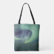 Foto de un astro de las fuertes luces verdes y violetas del norte (Aurora borealis) en el cielo nocturno ártico sobre el norte de Noruega, Escandinavia. El bosque en primer plano está completamente cubierto de nieve profunda. Ubicación de la foto: cerca de la frontera con Finlandia entre Tromso y Kilpisjärvi. Foto: Sebastian Worm