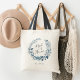 Un regalo dulce y elegante para tu criada de honor, el tote presenta una corona botánica de color azul y blanco con "doncella de honor" inscrita en el interior con escritura con letras a mano. Personalice con la fecha de boda o el nombre del destinatario debajo.