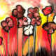 Los tonos vivos de rojo, naranja y amarillo delineados en negro dan a estas flores felices un aire abstracto. Originalmente pinté esta pieza de arte moderno con pintura acrílica sobre lienzo hace unos años. Como lo describió y tituló mi pequeña asistente, la flor más alta es la madre de las flores, y se refugia y cuida de sus pequeños.