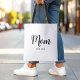Mamá Estableció Un Nuevo Regalo De Mamá - Bolsa De Tote De La Mamá Con Un Elegante Mínimo De Guión Negro. Celebremos a las madres y a las futuras madres en el día de la madre con este sencillo y elegante diseño de bolsos de té mostrando la palabra "Mamá" en un lúdico texto de escritura a ambos lados para una vibración alegre, y espacio para que la personalizes con un "Año Este" debajo de cuando te convertiste en mamá. También puedes cambiar "mamá" por mamá, mamá, hammam, mamá o cualquier nombre que prefieras usar.