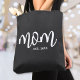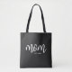 Simple Script Que Mamá Personaliza La Bolsa De Tote. Celebra la maternidad con este minimalista diseño que incluye la palabra "mamá" en un fluido alfabeto escrito a mano en ambos lados en blanco sobre una bolsa de tote negra. En la parte inferior derecha, un clásico "est. year" añade un toque personal - perfecto para una futura madre, una nueva madre, o para celebrar a la madre en cualquier momento. Se puede cambiar el color del tote. Ideal para el Día de la Madre o para el uso diario, este diseño limpio y moderno ofrece una manera atemporal de honrar a la madre con estilo.
