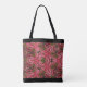 Este diseño abstracto original le da a este tote un ambiente bohemio. El diseño es muy complejo y recuerda a una mandala, con colores rosa y verde. Las bandas negras en la parte superior e inferior de la bolsa proporcionan un contrato nítido y le dan una apariencia inteligente a la bolsa.