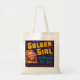Las manzanas Chicas doradas son una etiqueta de caja vintage de 1953. Un chica con las palabras Manzanas Chica Doradas junto a ella.