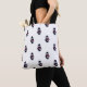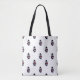 Do you like cute tote bags? This tote bag features a pattern of gray cats playing the snare drum and wearing a navy blue and red marching band outfit.