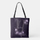 Bolso tote de marco geométrico violeta floral púrpura de nombre de monograma. Diseño único, hermoso y elegante. Fácil de personalizar. El estilo, tamaño y colores de la letra pueden ser cambiados. Artículos coincidentes disponibles.