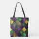 BOLSO DE TELA MARDI GRAS PATRÓN DE DIAMANTE VERDE Y PURPLE