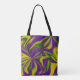 Mardi Gras Swirls 3589 Este colorido diseño de bolsos de tote fue inspirado en los eventos del Mardi Gras usando los colores, el verde es para la fe, el oro representa el poder y el morado significa justicia. Por celeste@khoncepts.com #mardigrastotebag