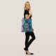 En este mágico tote azul místico se pintan trazos de colores azules y con superposiciones brillantes y purpurinoso creando un arte moderno mágico y caprichoso, junto con una tortuga marina tribal negra donde se puede personalizar con un nombre o logotipo