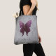 Lleva todos tus artículos cuando estés en marcha con un Tote de mariposa con joyas. El diseño del tote incluye una mariposa con joyas y una elegante combinación de damascos grises. También hay artículos de regalo adicionales disponibles con este diseño.