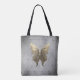 Lleva todos tus artículos cuando estés en marcha con un Tote de mariposa con joyas. El diseño del tote incluye una mariposa con joyas y una elegante combinación de damascos grises. También hay artículos de regalo adicionales disponibles con este diseño.