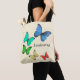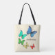 Hermosas mariposas multicolores en la bolsa blanca de Tote. El texto se puede personalizar. Elegantes bolsas de compras para mujeres.