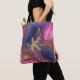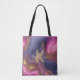 Agrega un toque de lujo artístico a tu rutina diaria con esta impresionante bolsa tote de mármol líquido. Este diseño moderno presenta una fascinante mezcla de remolinos de violeta intenso, magenta y púrpura amatista, acentuados por texturas de lámina dorada falsa y efectos de tinta alcohólica fluida.