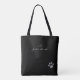 Un diseño sin fisuras para los amantes de las mascotas... patrón de patas de perro grises por todo el lado delantero... con su propio nombre (o nombre de tienda mascota) y iniciales en la parte posterior del tote negro