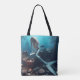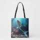 Mermaid symbolism reusable shopping bag: The mermaid is a mythical creature half human and half fish. Her legend is believed to have originated in ancient Syria around 1000 BC when the goddess Atargatis threw herself into the ocean hoping to alleviate the pain she feels for accidentally killing her human lover. In the water she is changed into a mermaid, her beauty being too great to allow her to completely transform into the image of a fish.