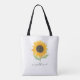 Minimal Rustic Sunflower Personalized Name Script Tote Bag