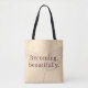 This minimalist “Becoming, beautifully.” tote blends soft neutral typography with quiet confidence. Designed for modern women who embrace authenticity while continuing to grow.