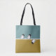 Esta bolsa de tote presenta una llamativa representación minimalista de aves, representada con líneas depuradas y bloques de colores audaces para crear un aspecto moderno y contemporáneo. El diseño equilibra las simples siluetas aviares con una paleta de colores contrastantes de verde azulado mudo y mostaza, evocando una estética inspirada en los escandinavos.