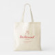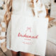 Minimalistic Script Coquette Bow Bridesmaid's Name Custom Tote Bag. Personalize this modern and elegant, coquette styled tote bag with your bridesmaid's name, and bachelorette or wedding location.