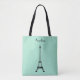 Bolso De Tela Mint Green Black Paris Torre Eiffel con nombre