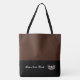 Esta bonita y elegante bolsa de tote grande se muestra en un estilo de bloques de color Siena quemada y Negro con una corona de concurso y texto personalizado. Personalizar este elemento y cambia el texto al tuyo.