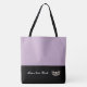 Esta bonita y elegante bolsa de tote grande se muestra en un estilo de bloques de color Lilac y Negro con una corona de concurso y texto personalizado. Personalizar este elemento y cambia el texto al tuyo.