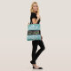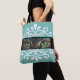 Moda vectorial floral gato ojos verdes en la bolsa de la tote verde azulada. Los ojos de gato se pueden personalizar con tu imagen horizontal favorita.