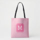 Lleve sus cosas con esta bolsa de tote montada en color rosa dulce monogramada, con un patrón de gingham de moda.