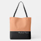 Esta encantadora mochila hacia adelante muestra la palabra "doncella de honor" en color blanco sobre negro con la bolsa superior de tote en el personalizado Cantaloupe. Tiene mucho espacio para el texto personalizado. Los gráficos y el texto están a ambos lados de este bolso. Mango negro. Personalizar más adelante o compra como se muestra.