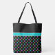 La polka colorida se coloca en un diseño de moda retro. Colores vibrantes sobre un fondo negro, con el monograma de su persona o de su ser querido. El estilo de fuente y el color son personalizable, al igual que el color de fondo, y todos los colores de forma. Lleva comestibles, artículos de la noche a la mañana, juguetes, artículos para bebés, suministros para mascotas o lleva a tu precioso mascota con estilo, con este tote divertido!