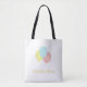 Moda tres globos Tote Bag. Los globos de colores amarillos, turquesas y rosas tienen un mensaje de texto: Celebrar buenos momentos. El texto se puede personalizar.