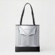 Elevate your wedding party gifts with this sophisticated trompe-l'œil lapel tote bag. Designed to mimic the structured elegance of a formal gown or custom suit, this bag features a crisp silver-gray pinstripe body, a scalloped lace-edge fold, and a personalized name plate. It is the perfect accessory for bridesmaids, maids of honor, or even a chic mother-of-the-bride gift for a black-tie wedding. Fully customizable with any name or title, this durable tote is both a stylish keepsake and a practical carry-all for the big day’s essentials.