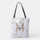 Modern Marble Gold Girly Script Monogram Tote Bag