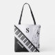 Bolso De Tela Modern Piano Music Notes Monograma Nombre blanco n