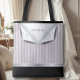 Embrace a softer side of elegance with this Blush Pink and Gray Pinstripe Tote. Designed with a chic "feminine tuxedo" aesthetic, this bag features a hand-drawn pinstripe pattern, a crisp white scalloped lace-edge lapel, and a personalized nameplate. It’s the ideal accessory for a garden wedding, bridal shower, or a "getting ready" morning. Durable and stylish, this tote is a meaningful keepsake for bridesmaids, maids of honor, or flower girls who love a modern, romantic look.