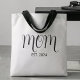 MomEstablished New Mom Gift - Minimal Elegant Black Script Mom Tote Bag - Add your custom "Est" established year date when your first child was born. Add additional years for each child.