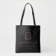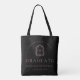 This classic, elegant graduation tote bag features a dusty rose pink monogram initial in open serif font encircled by a vintage line art acanthus crest on a black background. Personalize the text with the graduate's name, school and class year. Ideal for high school or college graduation.