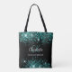Un fondo de color negro elegante. Decorado con polvo de brillo falso turquesa y verde. Personalice y agregue su primer nombre, iniciales del monograma y nombre completo. El nombre está escrito con un estilo de letra a mano.