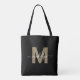 Elegante Personalizado Black Gold Trendy Script Nombre Monograma Tote Bag. Añade un toque de glamour y sofisticación a tu estilo cotidiano con esta bolsa de moda. Con una inicial dorada y elegante (nota: el oro es de color plano, sin brillo ni Relieve metalizado) centrada en un fondo negro y nítido, y un diseño limpio y moderno a ambos lados, este tote combina elegancia y practicidad. Perfecto para llevar lo esencial al trabajo, a la escuela o al día, este tote es ideal para profesionales de negocios, estudiantes o cualquier persona que aprecie accesorios elegantes y funcionales. Es un regalo para cumpleaños, vacaciones, el Día de la Madre o cualquier ocasión especial. Una adición pulida y glamurosa a tus productos de primera necesidad.