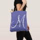 Un moderno y elegante monograma de escritura blanco y negro sobre un fondo perwinkle moderno que sirve bandeja. Moderno y elegante.