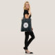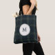 Navidades modernos tote bolsa con un diseño atemporal con tu monograma sobre un fondo azul marino mudo y de manto verde.