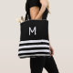 Hermosas franjas modernas en blanco y negro con bolsita de tote monograma. Elegante bolsa de compras blanca negra para mujeres.