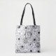 Agrega un toque de elegancia a tu rutina diaria con esta elegante bolsa tote, que presenta un monograma personalizado y un nombre enmarcados dentro de un detalle cuadrado chic. La bolsa muestra un hermoso patrón floral botánico que recuerda a los perfumes franceses de alta gama o a las marcas de moda de lujo, lo que aporta un sentido de la naturaleza y la primavera a tu bolso diario. La sofisticada mezcla de tipografía serif negrita y delicada escritura a mano le da a la bolsa un aspecto atemporal y elegante, lo que la hace perfecta para cualquier ocasión. Ya sea que vayas al mercado, al gimnasio o simplemente a dar un paseo, esta bolsa versátil es funcional y elegante. Es un regalo ideal para las damas de honor, una novia en su fiesta de compromiso, cumpleaños, Día de la Madre o cualquier ocasión especial. El diseño personalizable te permite crear un accesorio único que combina el encanto boho con un estilo clásico inspirado en el arte, lo que lo convierte en un imprescindible elegante y sofisticado. Elegante bolsa tote con monograma de nombre y patrón floral en blanco y negro, reg