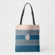 Bolso De Tela Monograma Moderno Chic de rayas grises y azules me