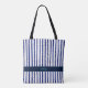 Bolsa tote de monograma moderno de rayas azules y blancas