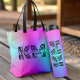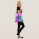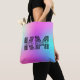 Bolso tote de monograma ombre de neón retro colorido rosa, morado y azul. Personalice la inicial para un regalo personalizado.