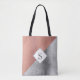 Bolsa de tote monograma metálico rosa personalizada de oro / rosa y plata de toda la impresión