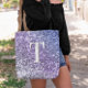 Bolso De Tela Monogramado Purpurina morado de Ombre Chunky
