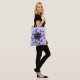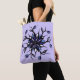 Bolsa floral gótica con un fresco ilustracion de mandala extraño - dibujo de tinta digitalmente de una extraña flor con monstruos reptiles con dientes afilados en colores negro, violeta y azul.