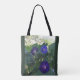 A portrait of morning glories like kaleidoscopes of sky and indigo, violet and plum, pinwheeling against the lush green vines, backlit by the sun… this mesmerizing tote bag makes a beautiful gift for anyone who loves flowers, or for yourself! Use it to carry anything from groceries to garden tools, from baby supplies or a change of clothes, to your latest finds from the local flower shop, all while you share a bit of natural beauty with anyone who passes by.